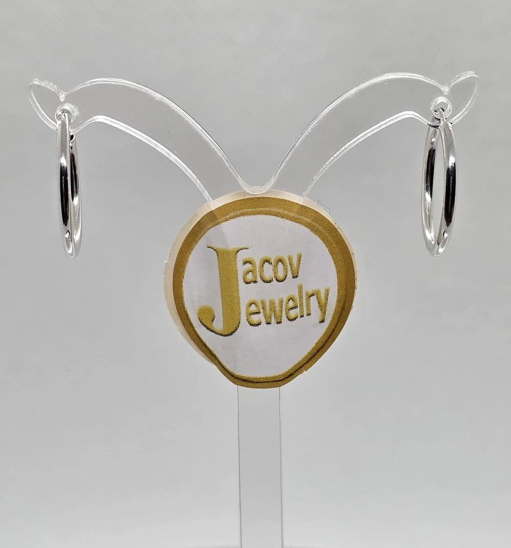 זוג עגילים דגם חישוק עגול קוטר 18 מ"מ בזהב לבן 14K