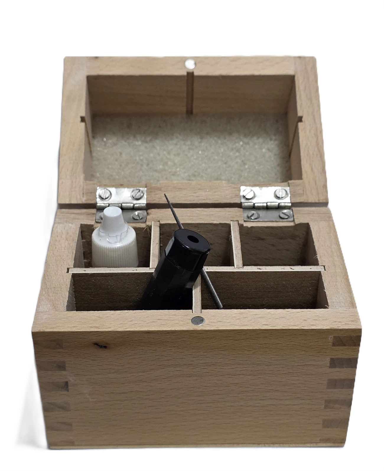 *סט לבדיקת כסף כולל קופסת עץ לשולחן העבודה.