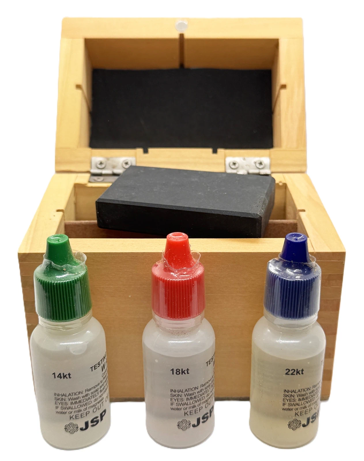 *סט לבדיקת זהב כולל קופסת עץ לשולחן העבודה.